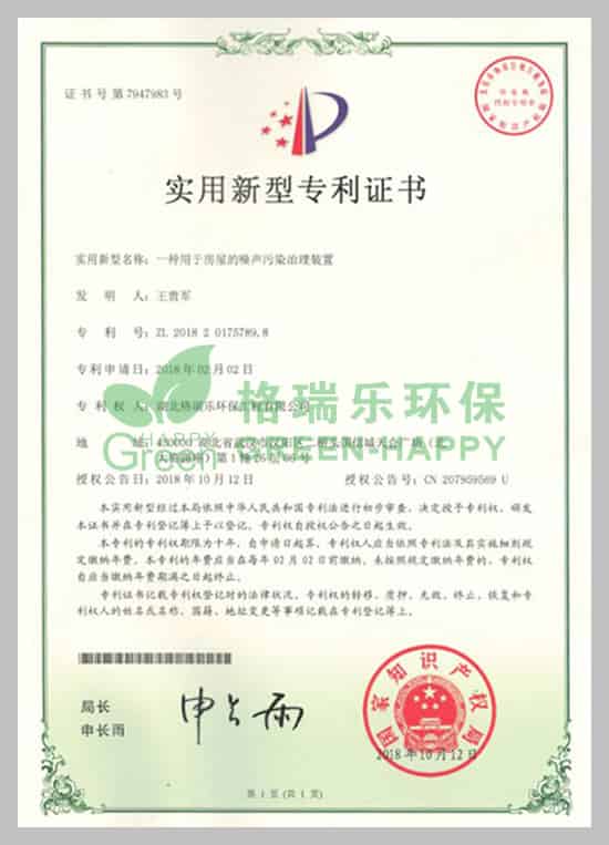 格瑞樂除甲醛權(quán)威專利證書集